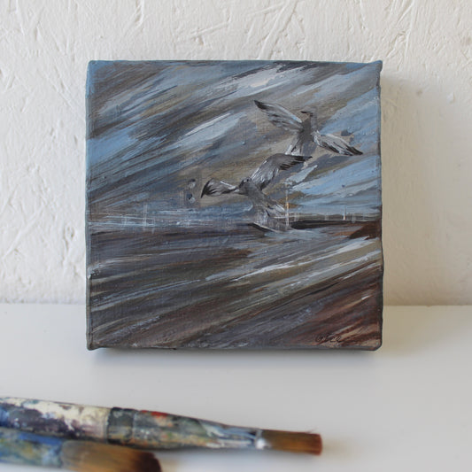 Aberavon beach seagulls, original Welsh beach on canvas.
