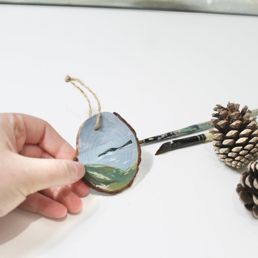 Rhossili Sunflowers Hand-Painted on Wood Slice with Twine - Rustic Welsh Art. Unique Gower Gift decoration