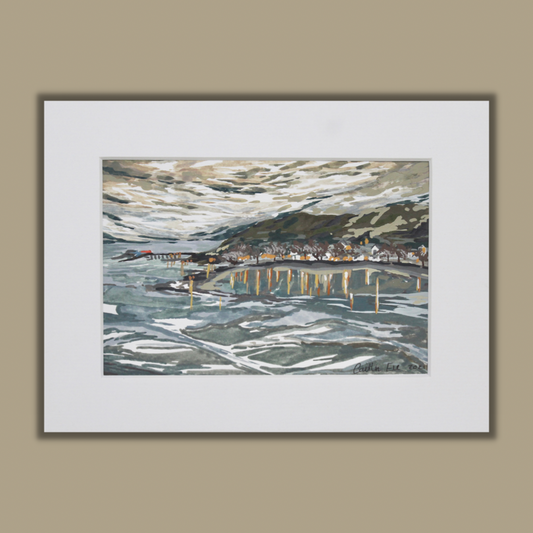 Caswell bay at night, Swansea. Hand-painted decoration.
