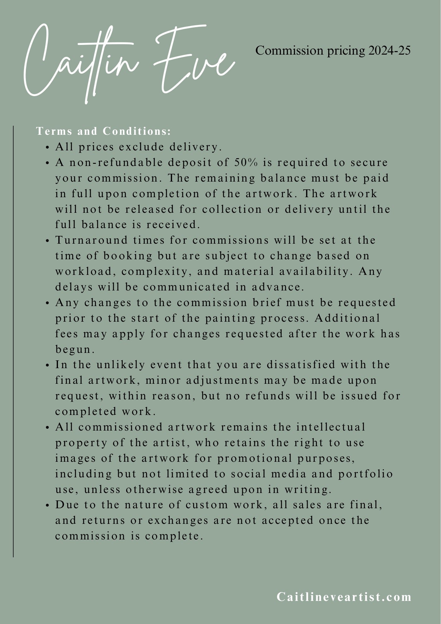 Caitlin Eve Artist holds no responsibity for loss or damage when the work is handed over to Royal Mail, though if you have any issues with your order please get in touch.
