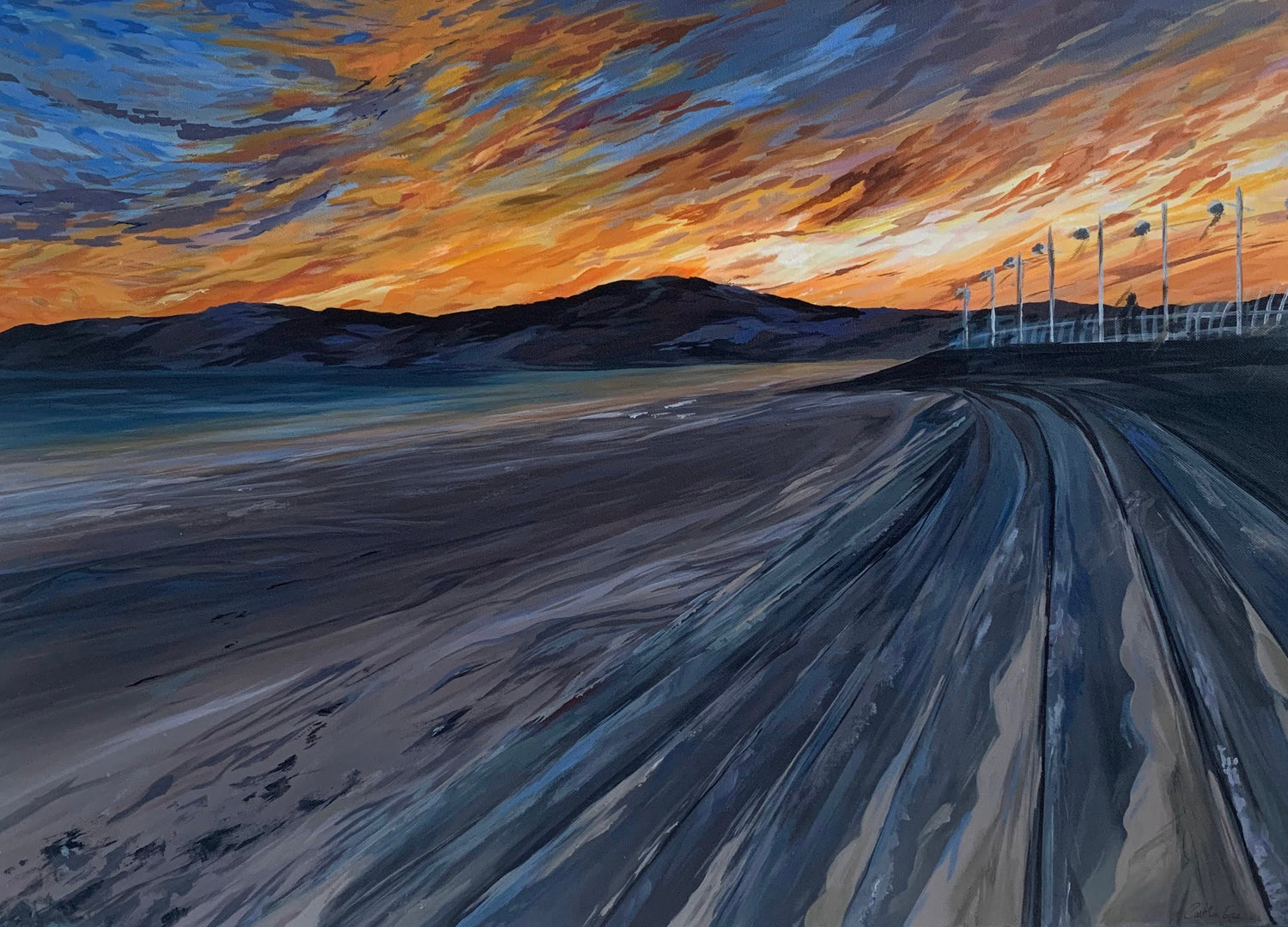 Tenby Harbour, an Autumn Evening. An original framed 90x65 cm acrylic painting on canvas by Welsh artist Caitlin Eve.