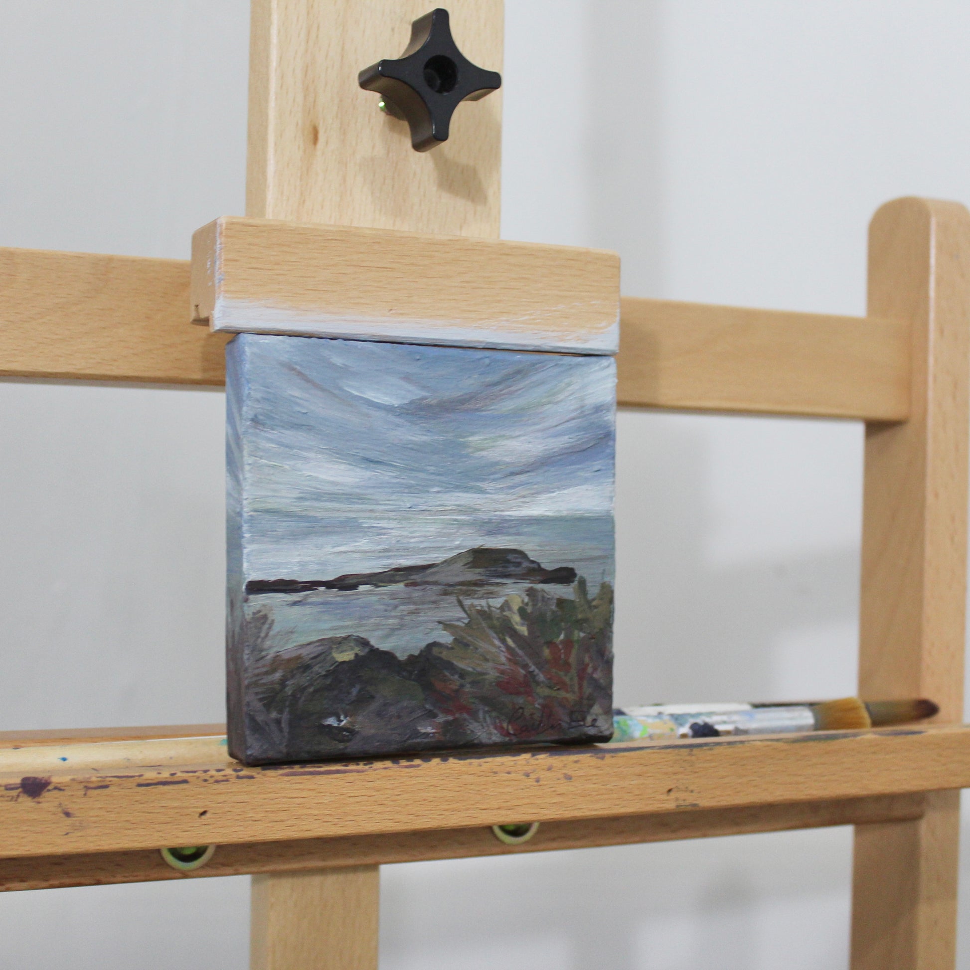 An original acrylic painting of the impressive Worms Head situated within South Wales' Gower Peninsular. The painting has been created in an impressionistic style on a small square canvas. Works on canvas will arrive ready to hang.